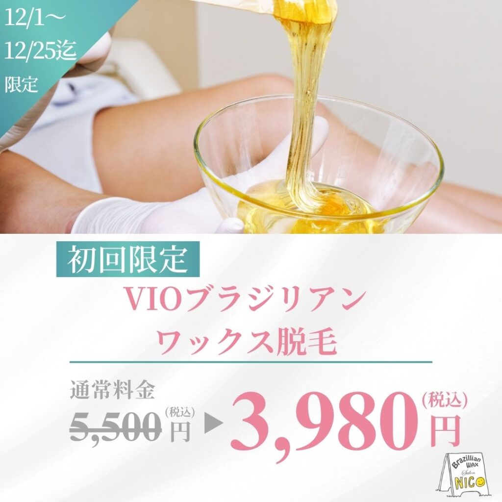 当店で人気のVIOワックスを、初めての方限定で¥3,980でご体験いただけます。